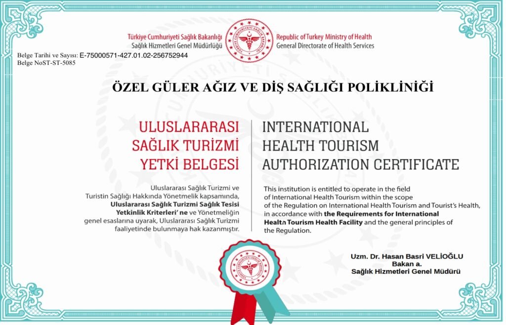 Uluslararası Sağlık Turizmi Yetki Belgesi, Türkiye’de sağlık turizmi faaliyetlerinde bulunmak isteyen hastaneler, klinikler, poliklinikler ve aracı kurumlar için T.C. Sağlık Bakanlığı tarafından verilen resmi bir belgedir.